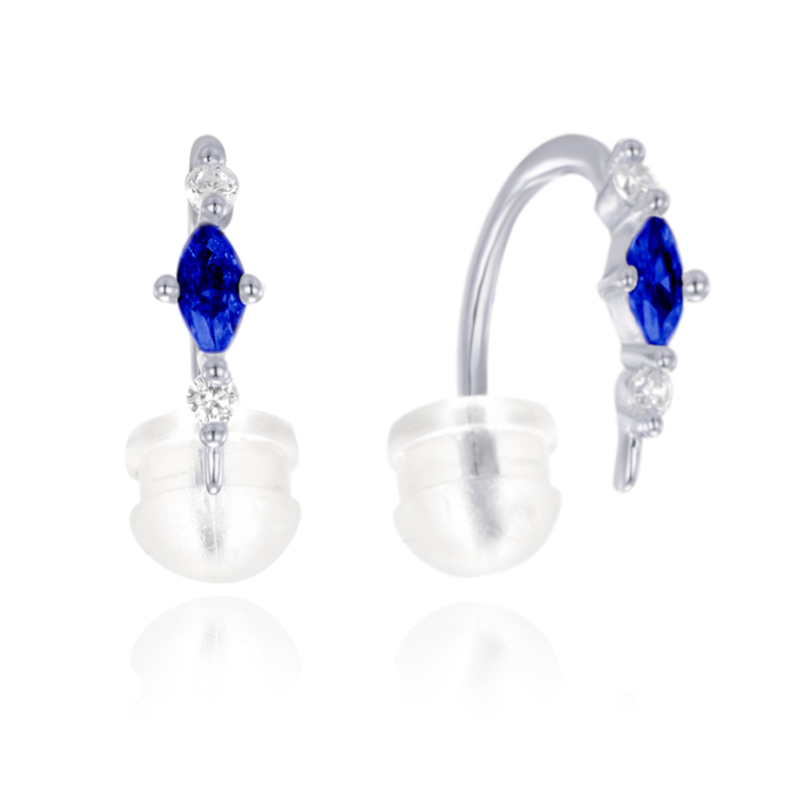 MINET Elegantní stříbrné protahovací náušnice s bílými a modrými zirkony