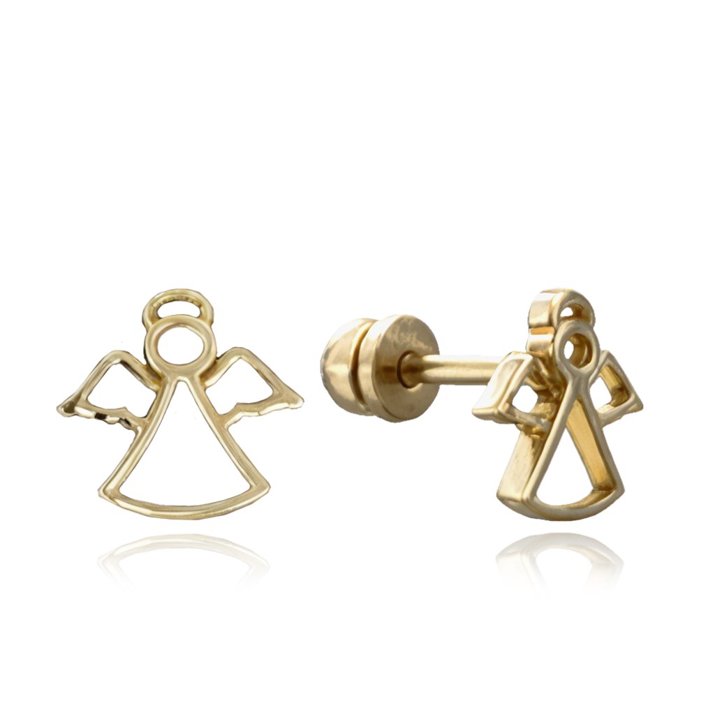 MINET Elegantní zlaté náušnice na šroubek andělé Au 585/1000 1,10g