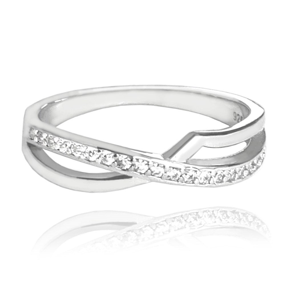 MINET Křížený stříbrný prsten s bílými zirkony vel. 58
