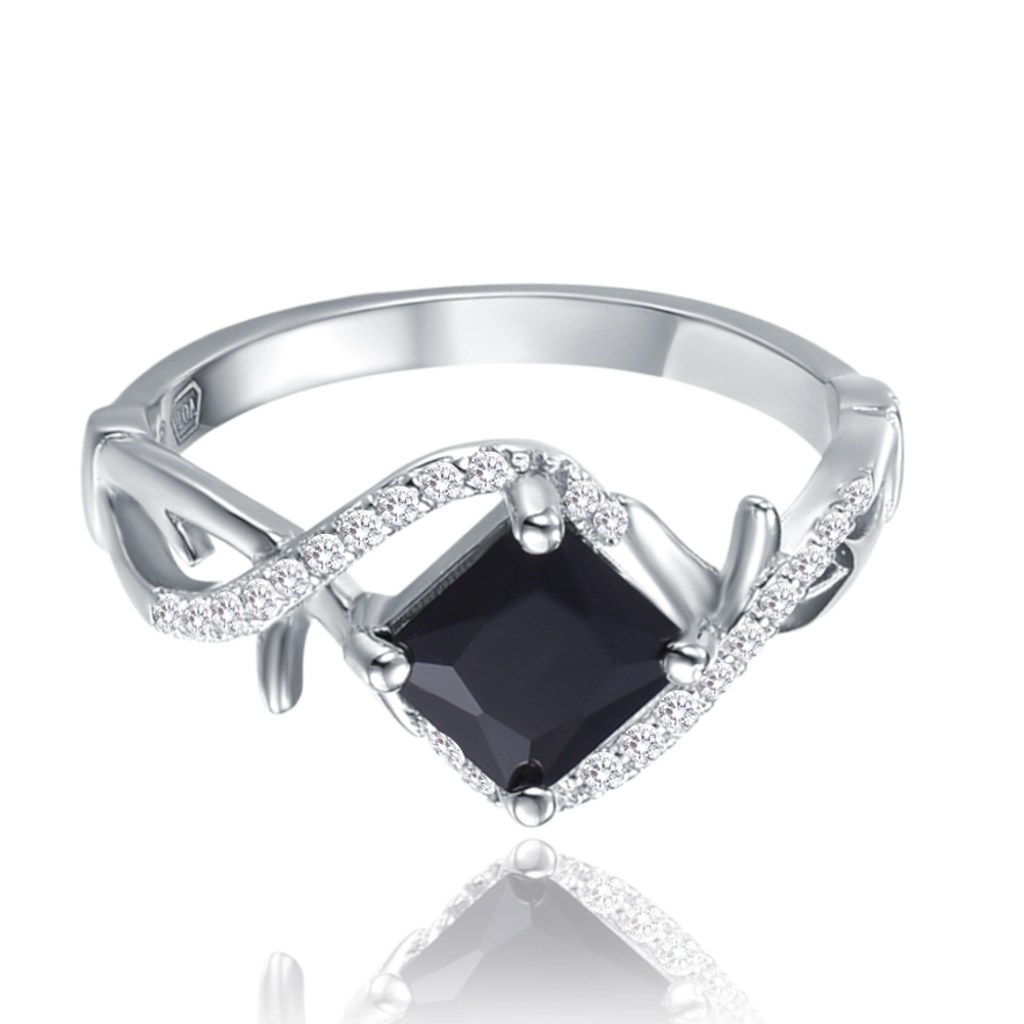 MINET Křížený stříbrný prsten s černým zirkonem vel. 54