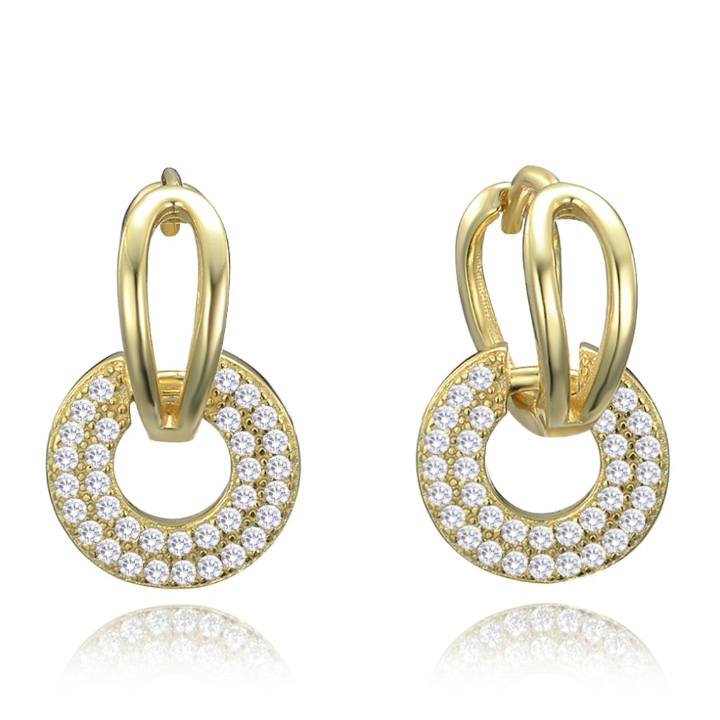 MINET Luxusní pozlacené stříbrné náušnice dvojité kroužky s bílými zirkony