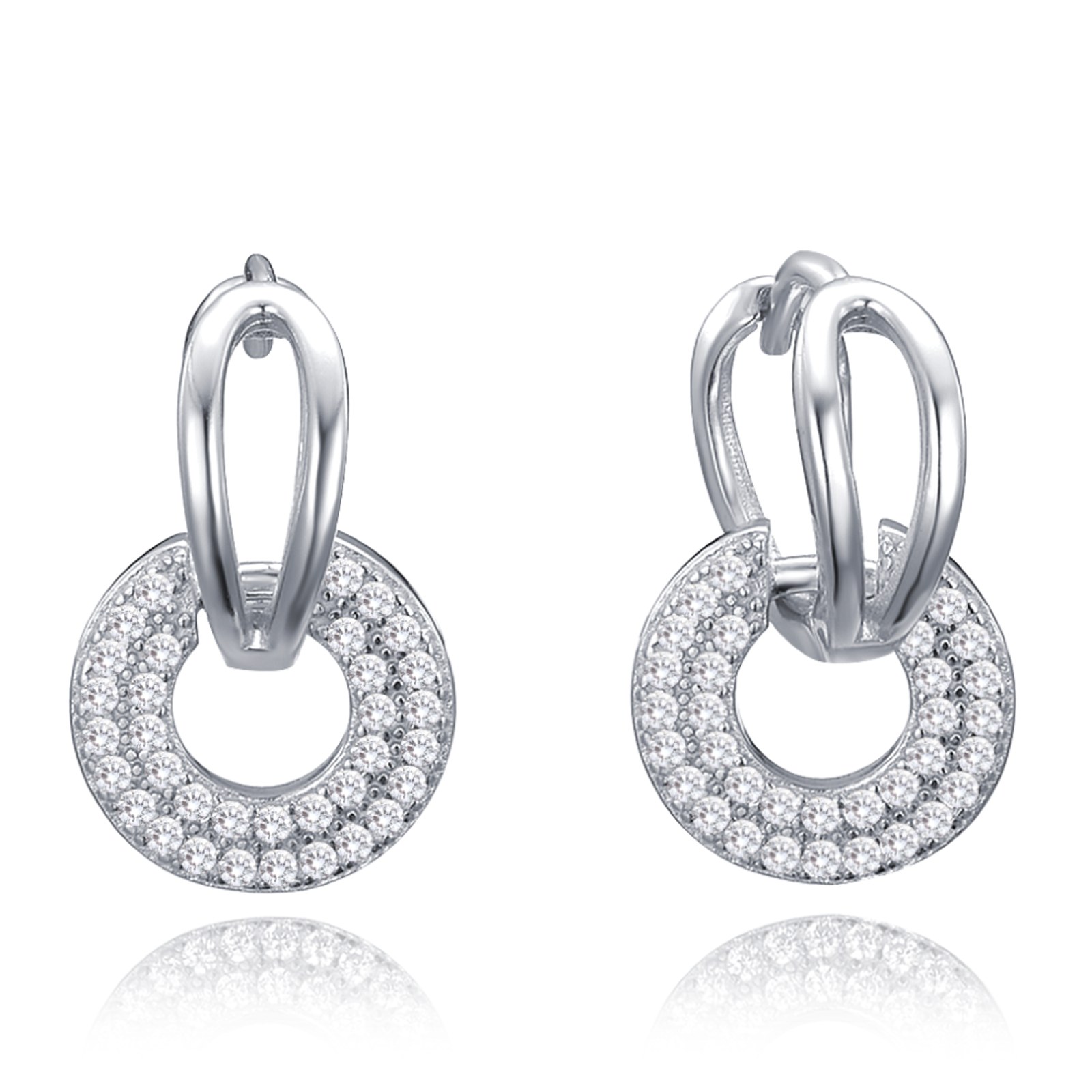 MINET Luxusní stříbrné náušnice dvojité kroužky s bílými zirkony