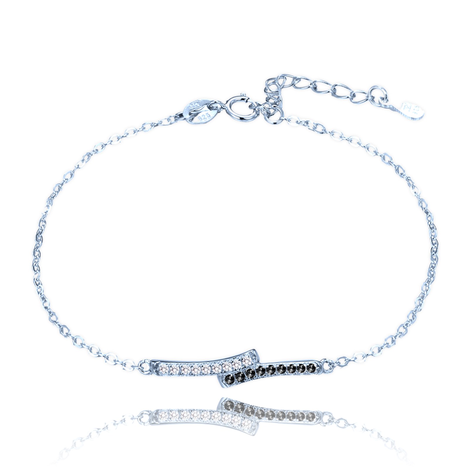 MINET Luxusní stříbrný náramek s bílým a černými zirkony
