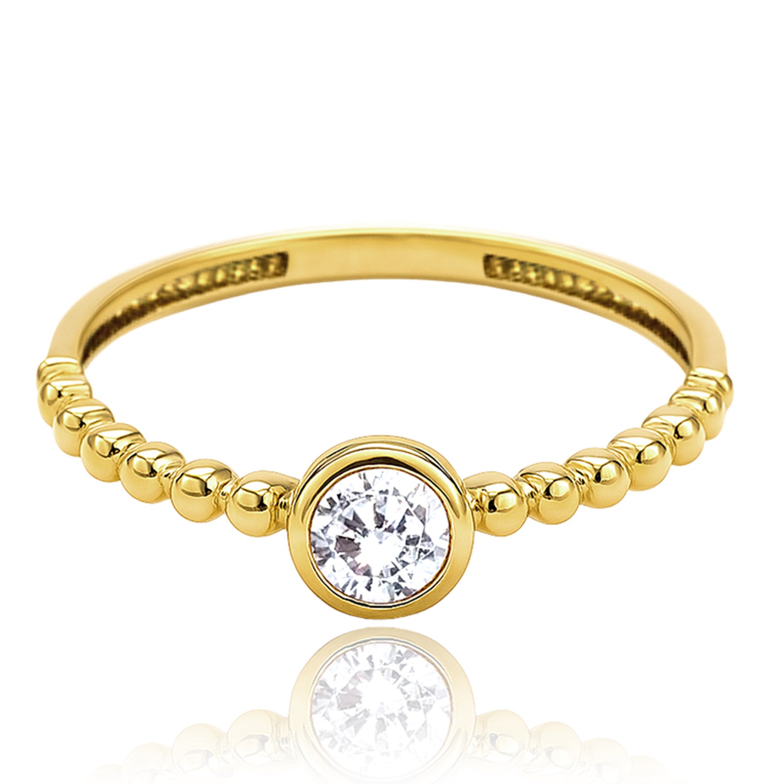 Moderní prsten z pravého 14karátového zlata s bílým zirkonem. Prsten je vhodný pro každodenní nošení i zvláštní příležitosti. Kvalitního zpracování si všimnete hned po prvním nošení.