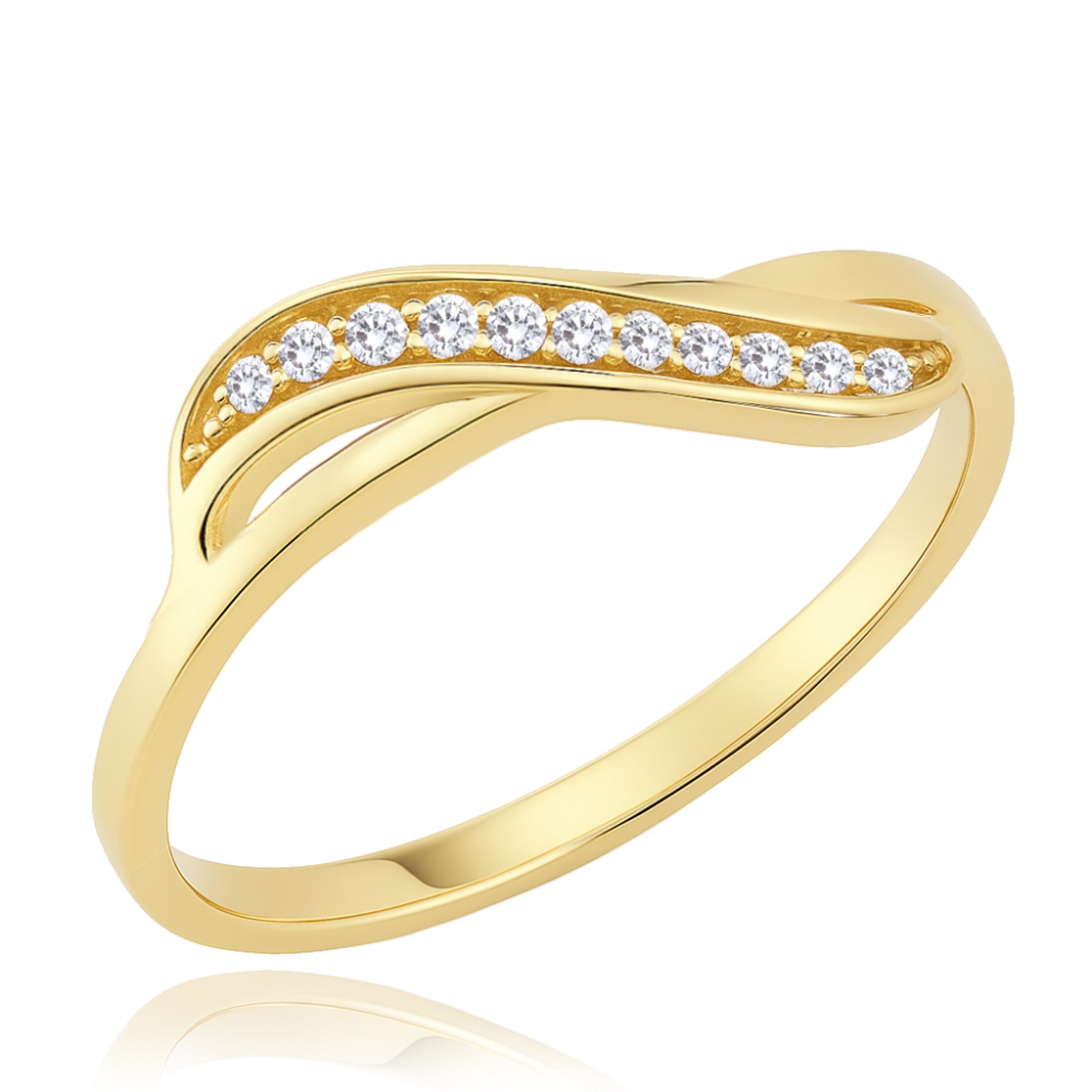 Moderní prsten z pravého 14karátového zlata s bílými zirkony. Prsten je vhodný pro každodenní nošení i zvláštní příležitosti. Kvalitního zpracování si všimnete hned po prvním nošení.