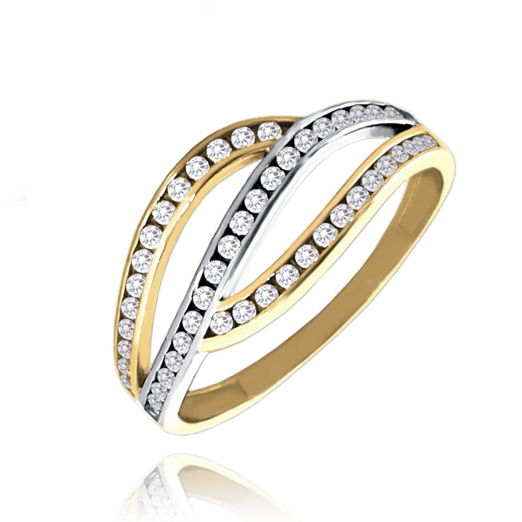 Zlatý prsten se zirkony a detaily z bílého zlata