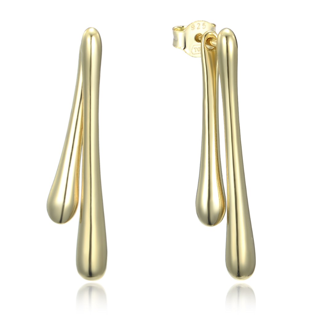 MINET Moderní pozlacené stříbrné náušnice visací kapky