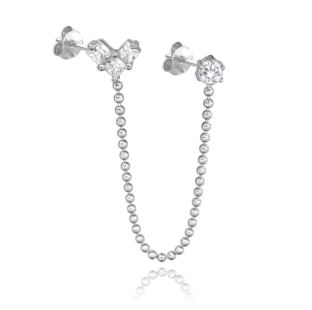 MINET Moderní stříbrná náušnice SRDÍČKO se zirkonem a řetízkem