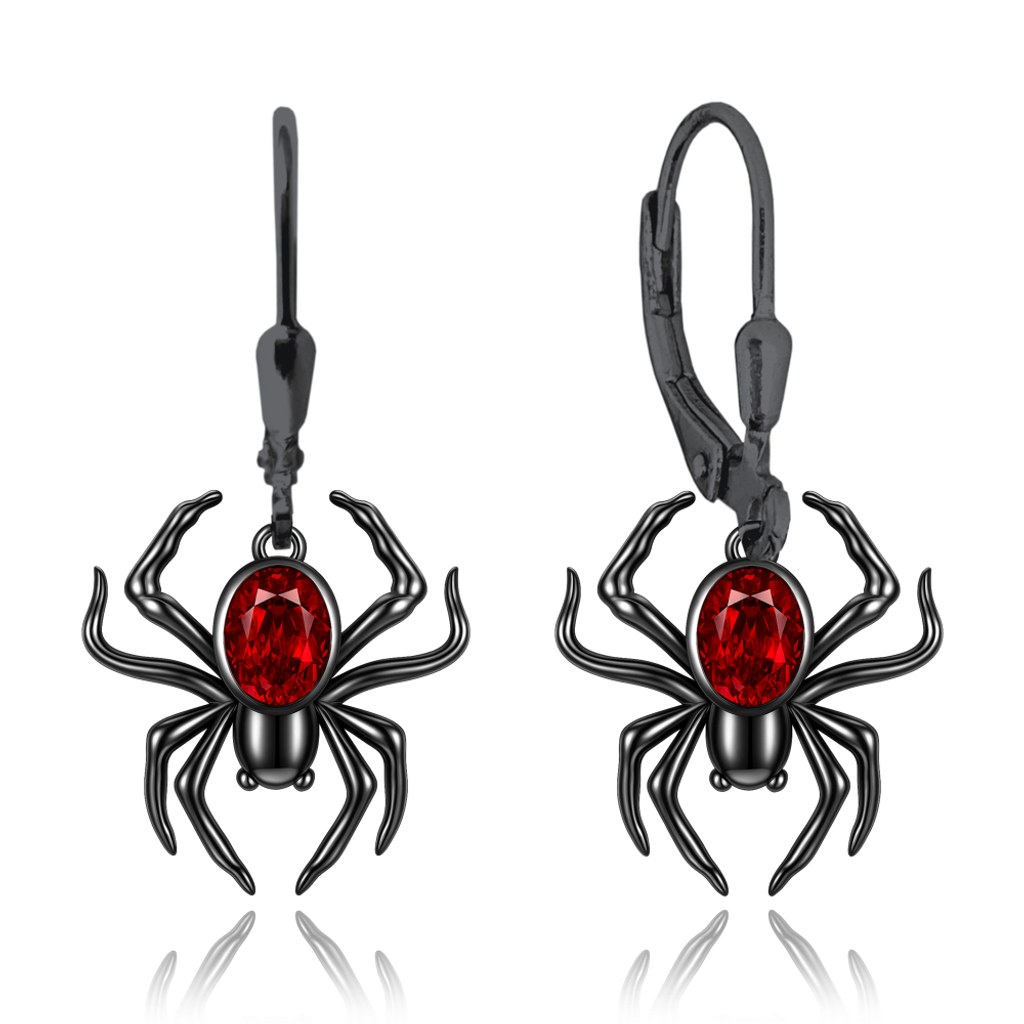 MINET Moderní stříbrné černé náušnice pavouci s červenými zirkony