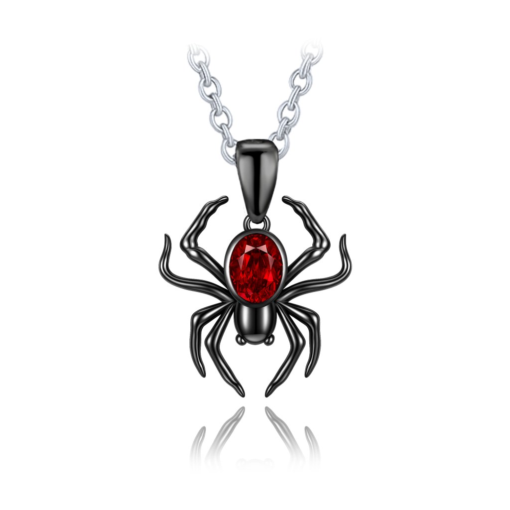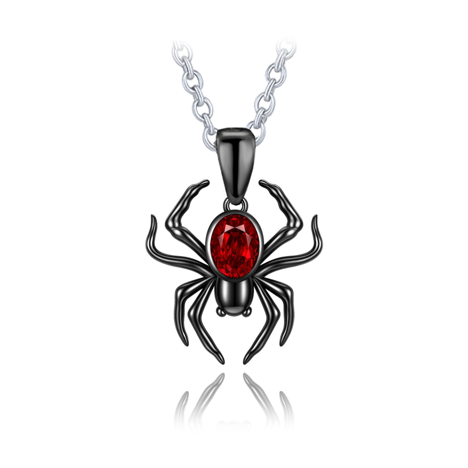 MINET Moderní stříbrný černý náhrdelník pavouk s červeným zirkonem
