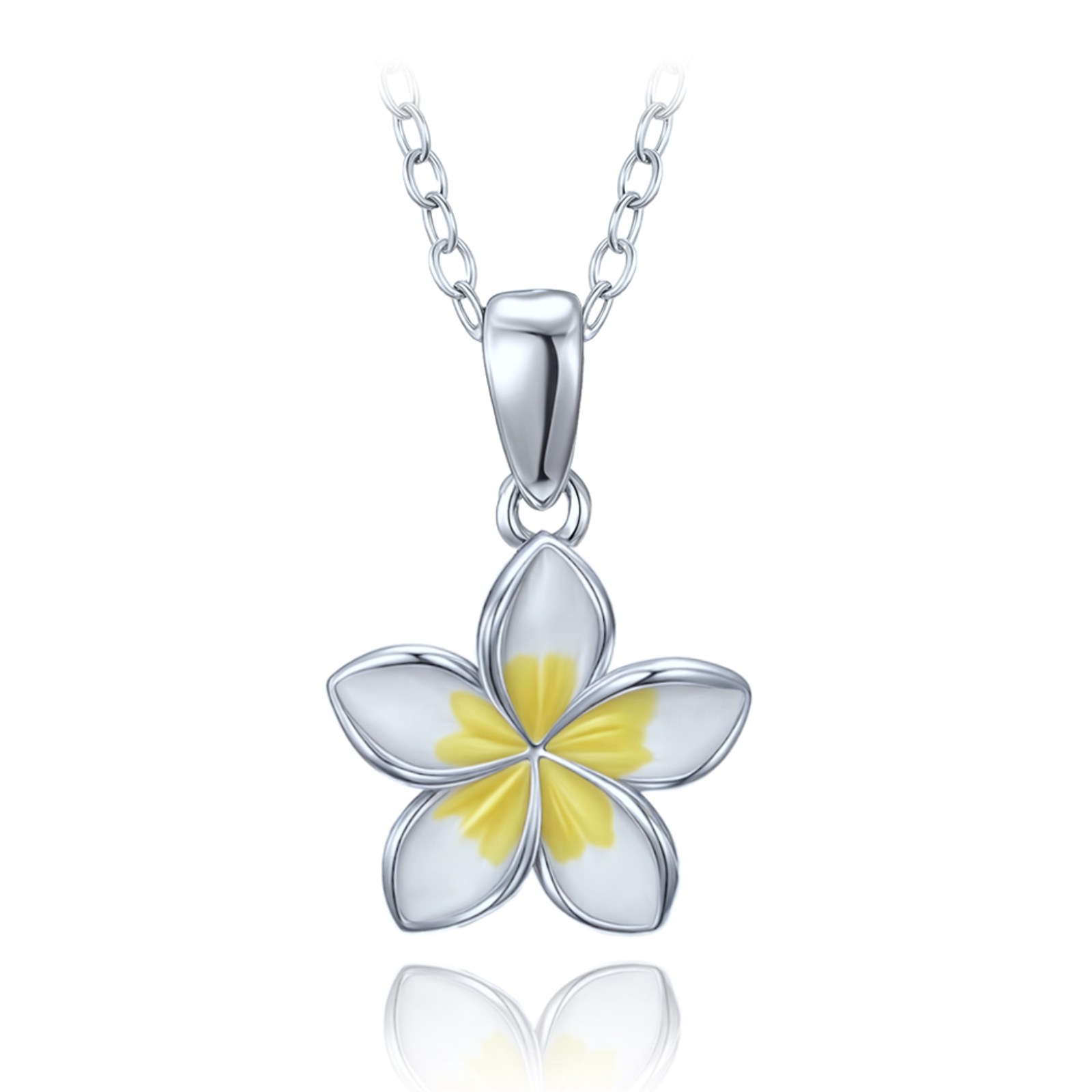 MINET Moderní stříbrný náhrdelník bílá kytička