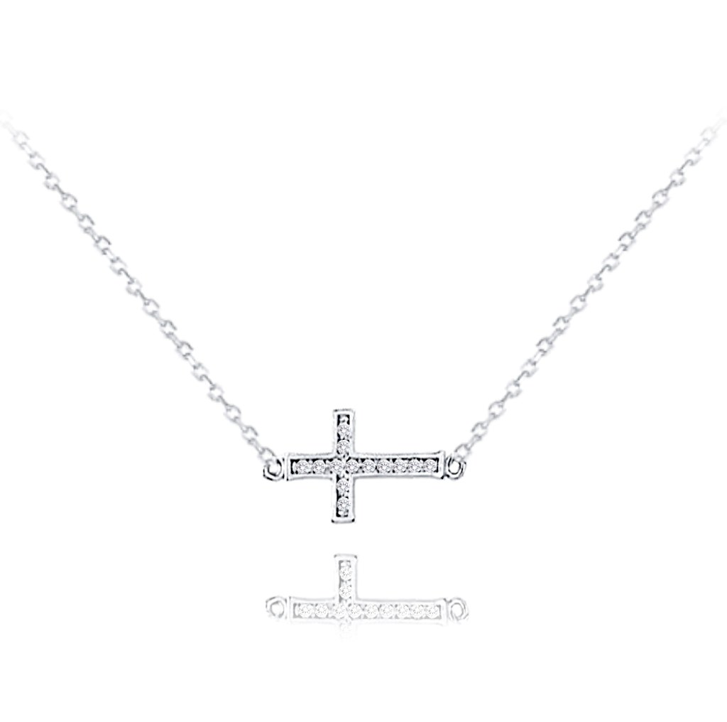 MINET Náhrdelník z bílého zlata křížek se zirkony Au 585/1000 1,70g