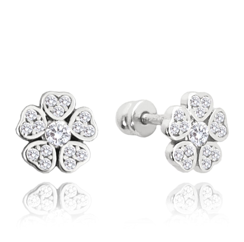 MINET Náušnice z bílého zlata kytičky na šroubek s bílými zirkony Au 585/1000 1,25g