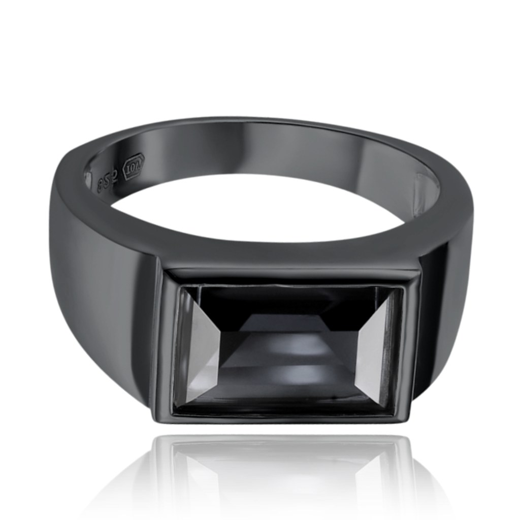 MINET Pánský pečetní stříbrný prsten s černým zirkonem vel. 59