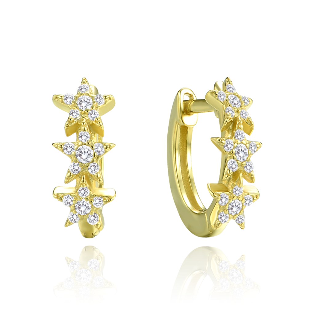 MINET Pozlacené stříbrné náušnice hvězdy s bílými zirkony