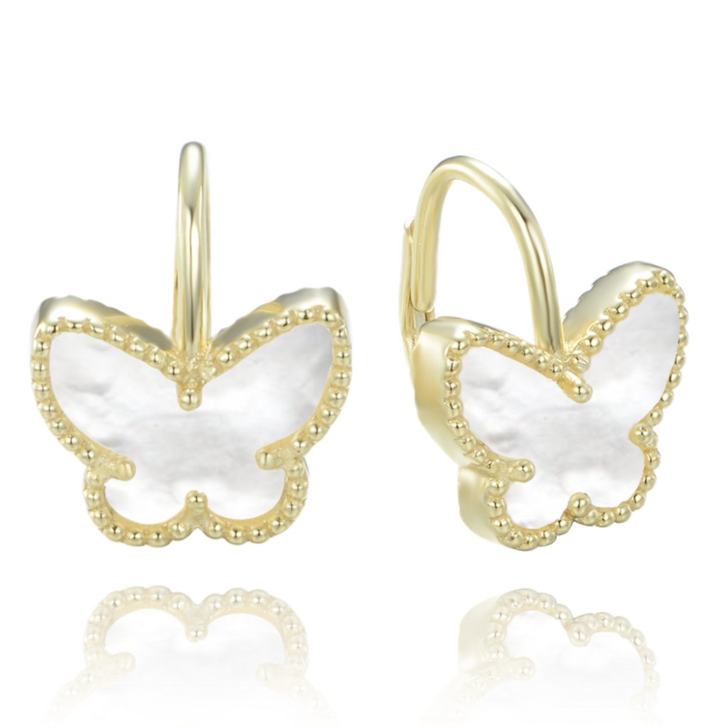 MINET Pozlacené stříbrné náušnice motýlci s bílou perletí