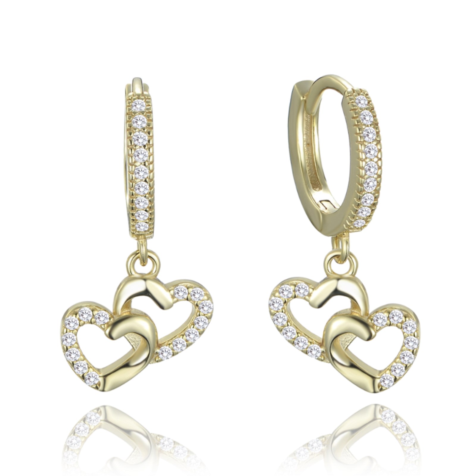 MINET Pozlacené stříbrné náušnice srdce s bílými zirkony