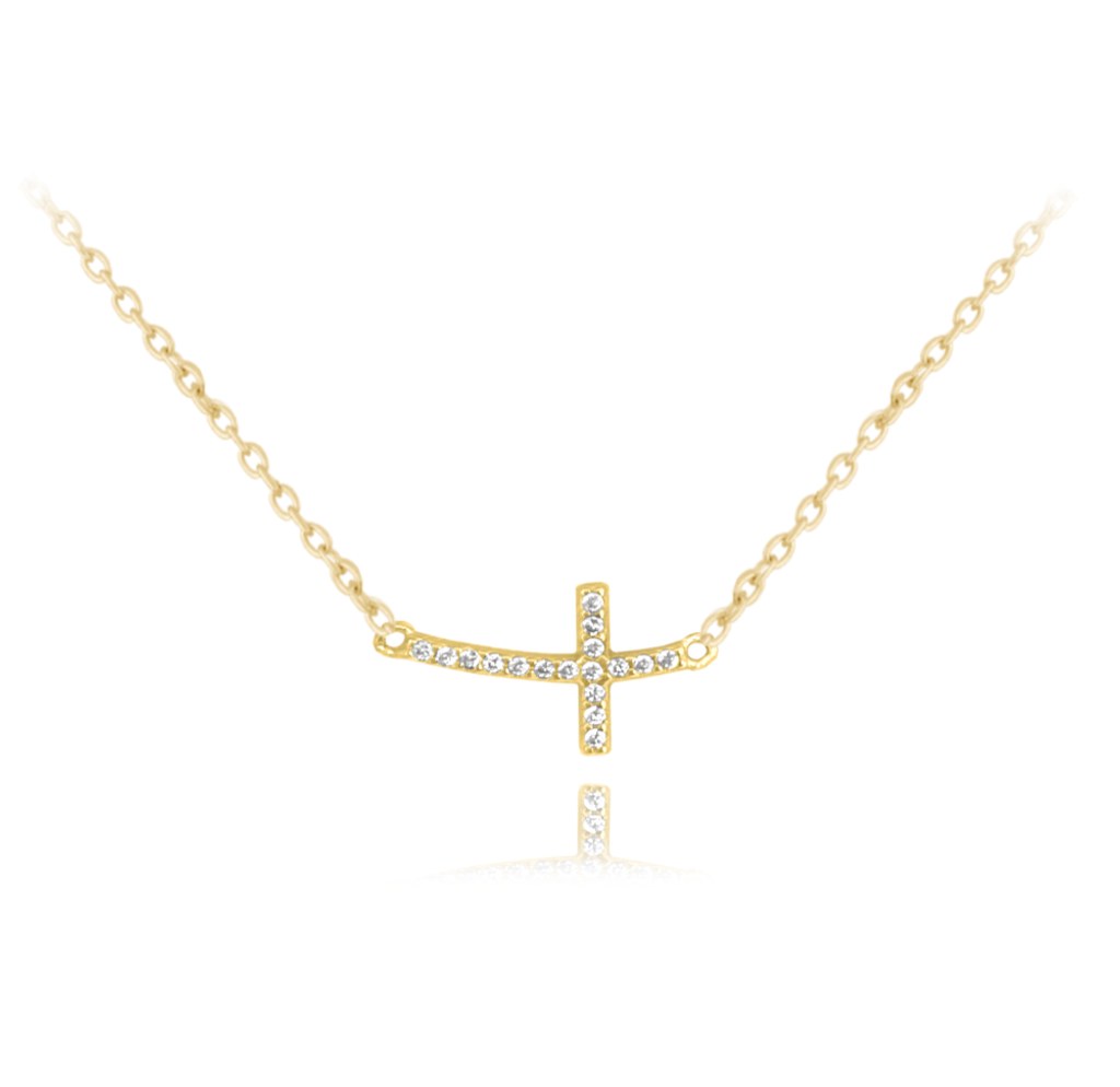 MINET Pozlacený stříbrný náhrdelník drobný ležatý KŘÍŽEK se zirkony