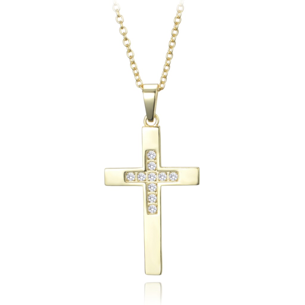 MINET Pozlacený stříbrný náhrdelník křížek s drobnými zirkony