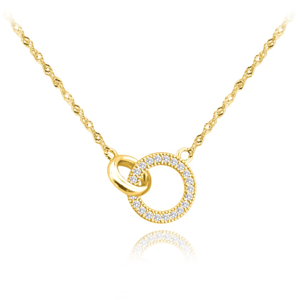 MINET Pozlacený stříbrný náhrdelník KROUŽEK s bílými zirkony