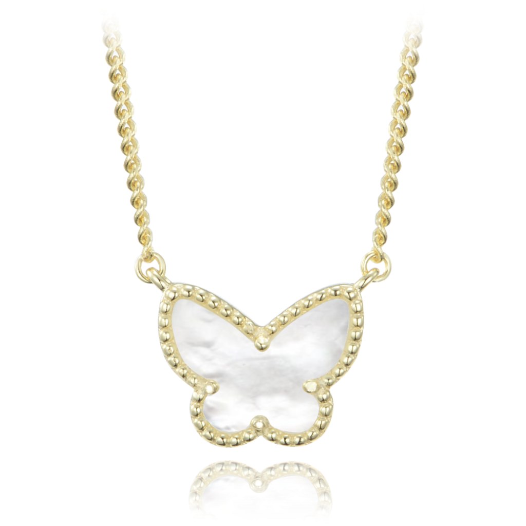 MINET Pozlacený stříbrný náhrdelník motýlek s bílou perletí