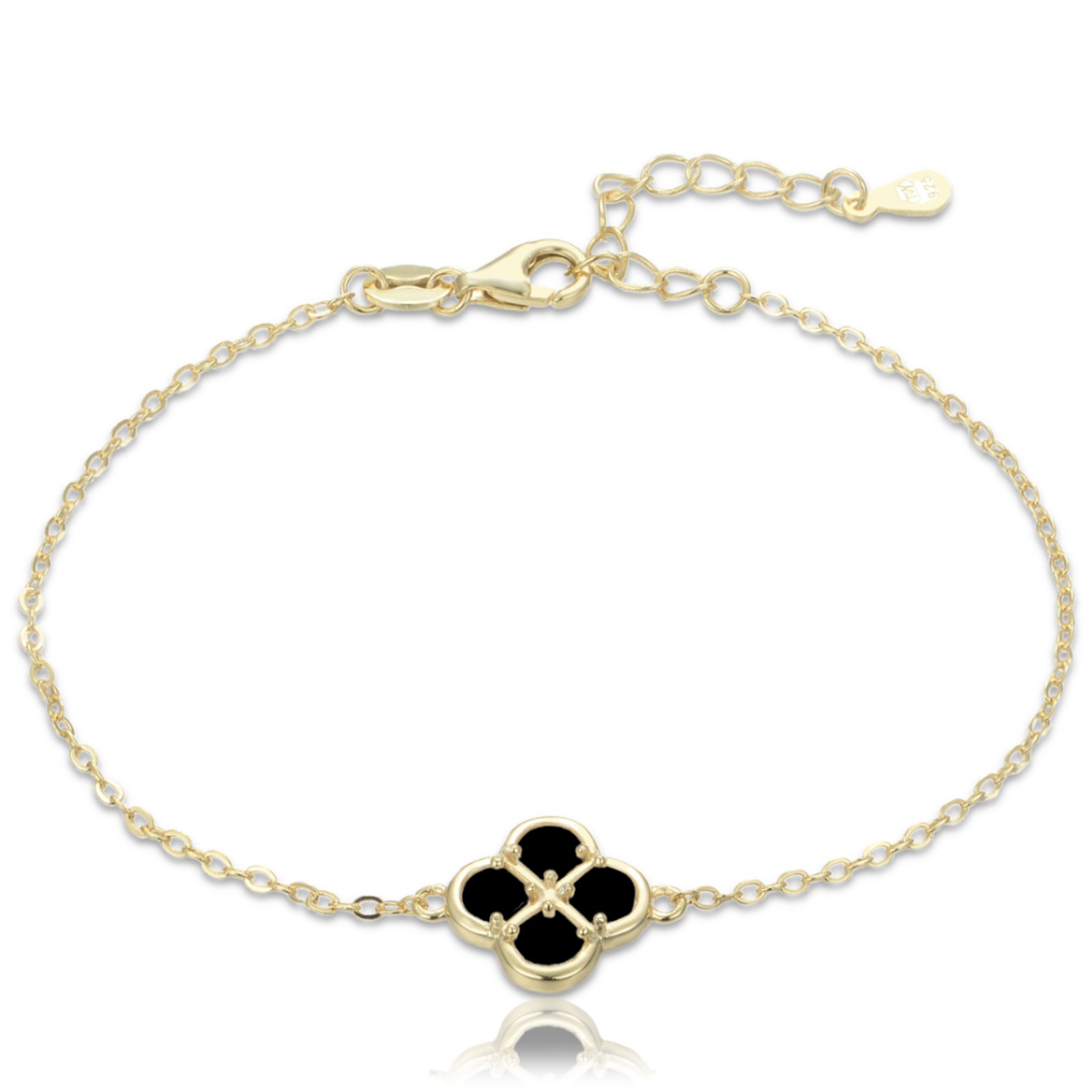 MINET Pozlacený stříbrný náramek čtyřlístek s černou perletí