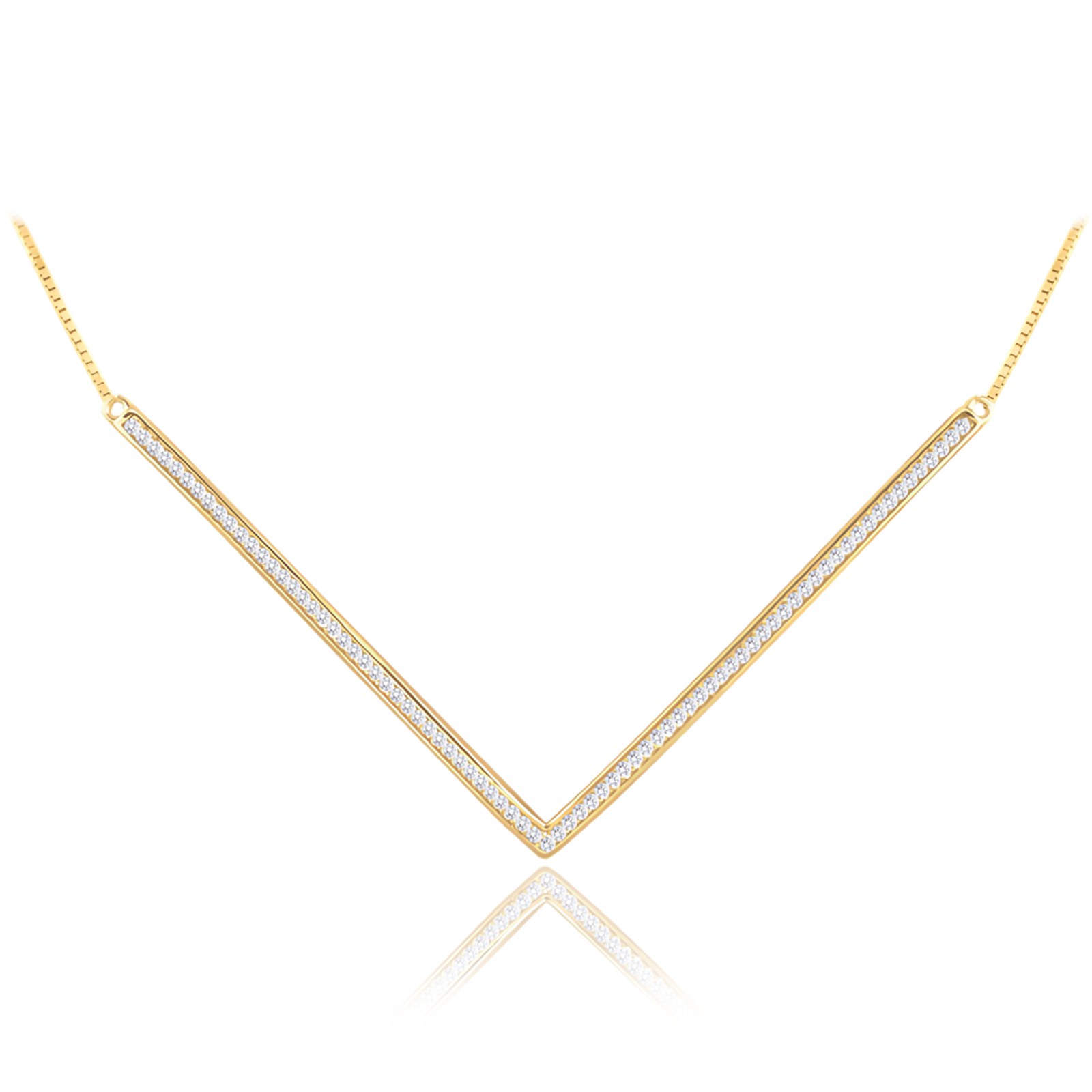 MINET Pozlacený stylový stříbrný náhrdelník "V" s bílými zirkony