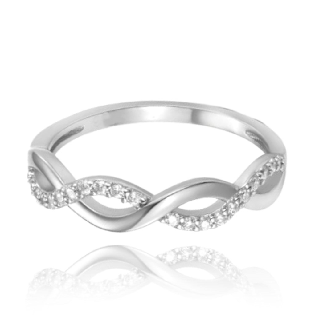 MINET Překřížený stříbrný prsten s bílým zirkonem