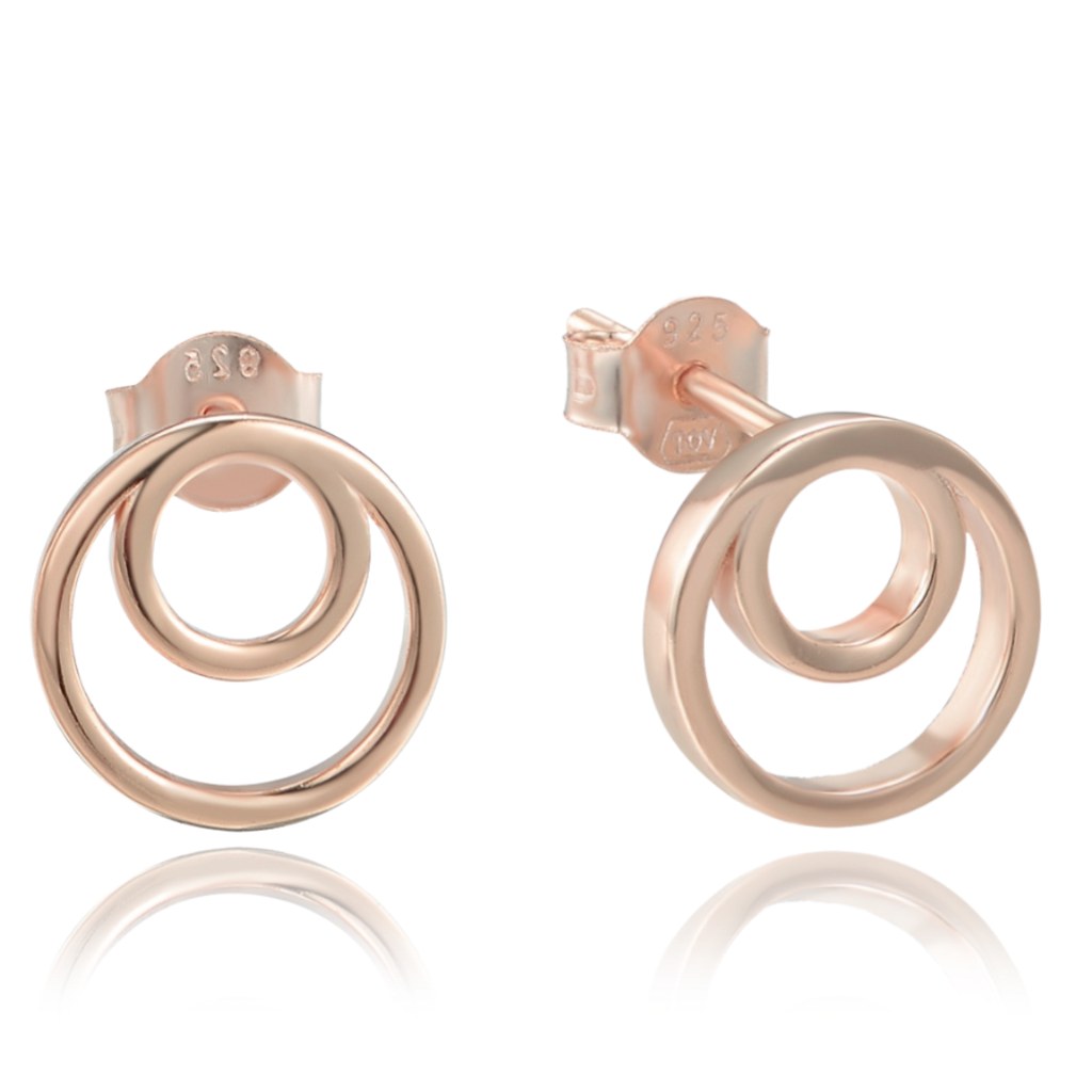 MINET Rose gold stříbrné náušnice dvojité kruhy