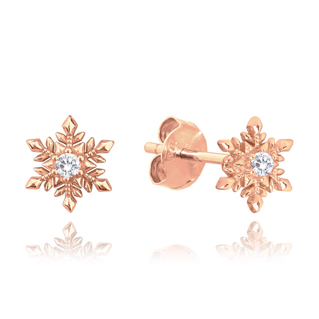MINET Rose gold stříbrné náušnice SNĚHOVÉ VLOČKY s bílými zirkony