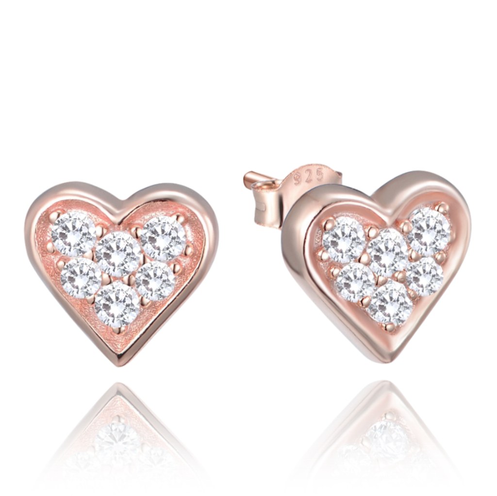 MINET Rose gold stříbrné náušnice srdíčka se zirkony
