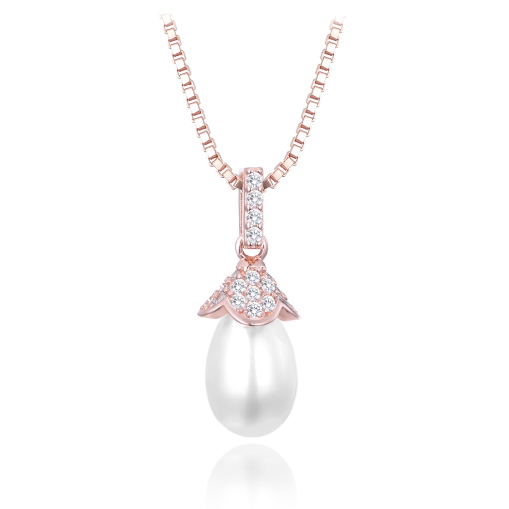 MINET Rose gold stříbrný náhrdelník s přírodními perlami a zirkonem