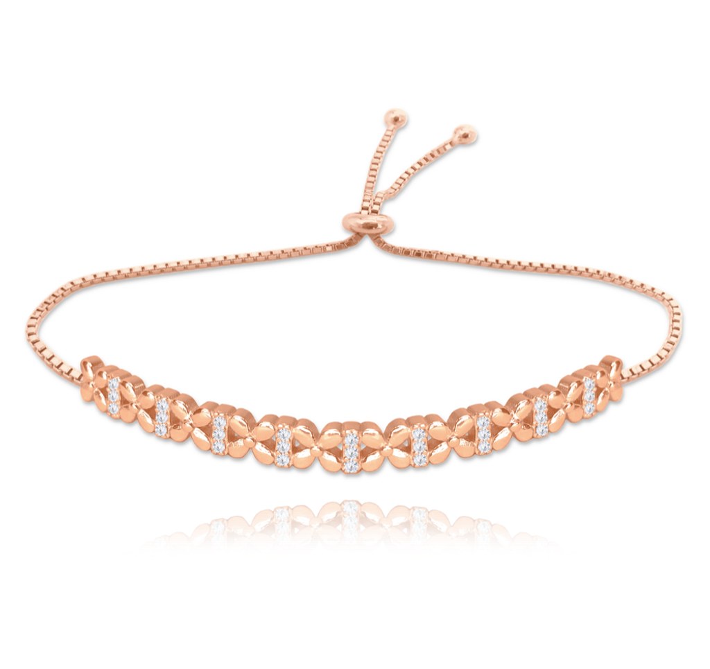 MINET Rose gold stříbrný náramek KYTIČKY s bílými zirkony a stahovacím zapínáním