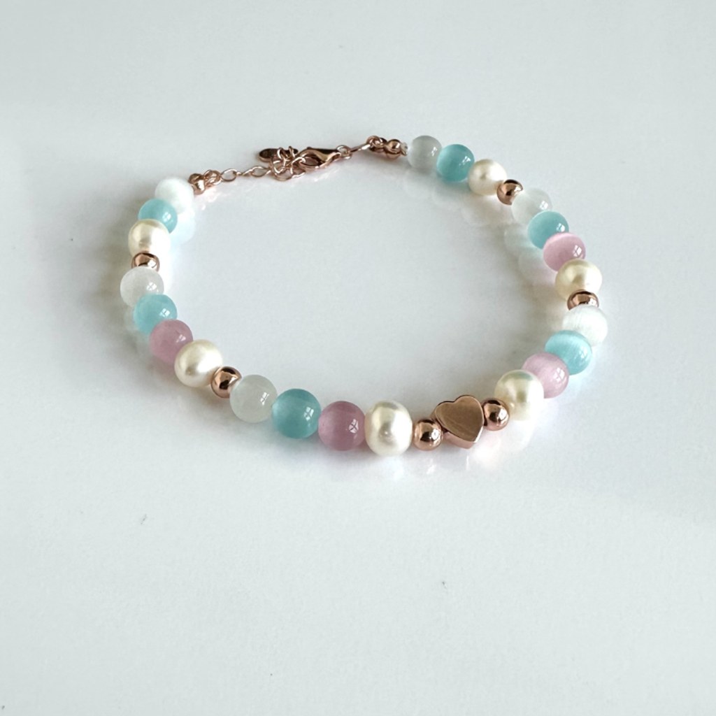 MINET Rose gold stříbrný náramek s přírodními perlami a barevnými kuličkami