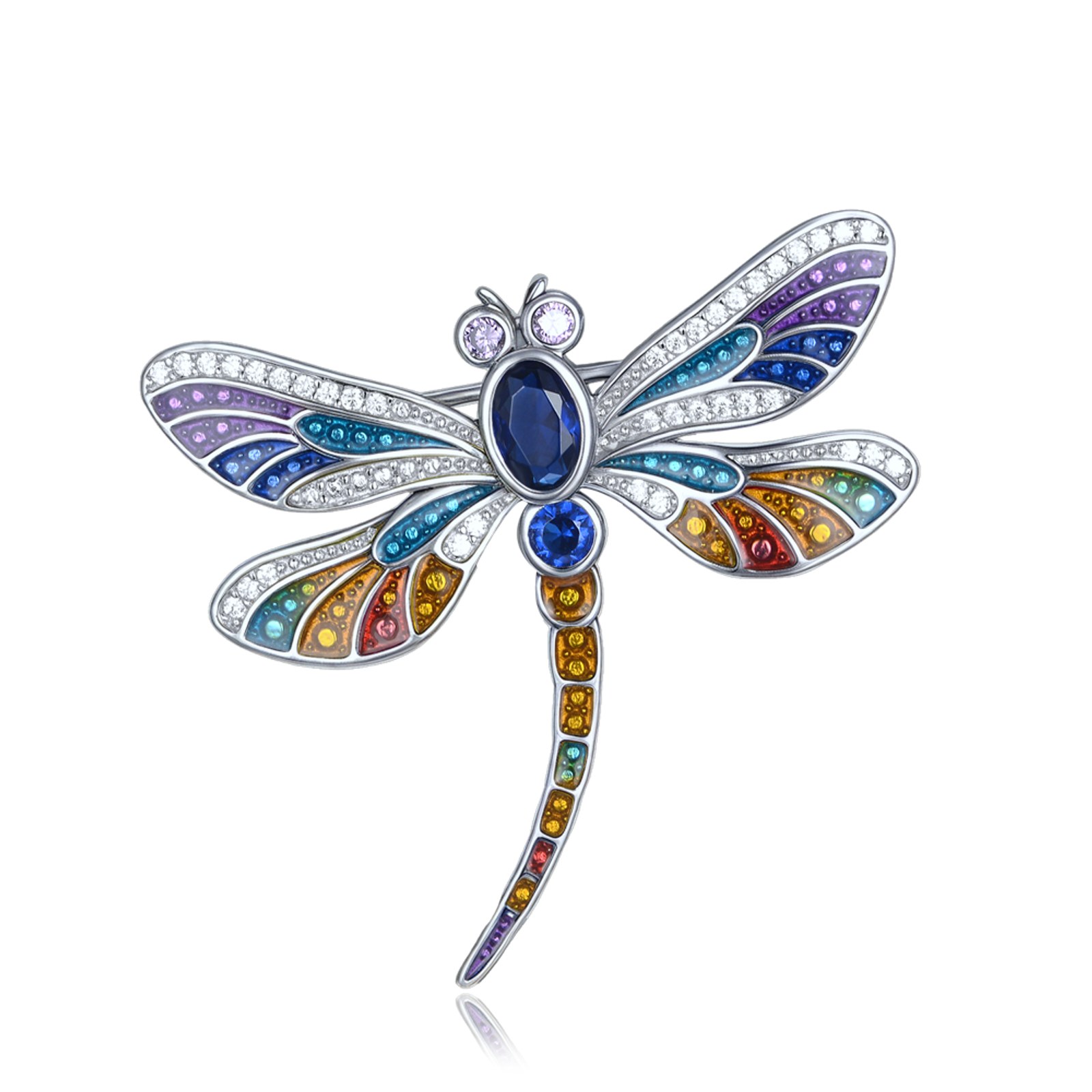 MINET Stříbrná brož vážka s různobarevnými zirkony