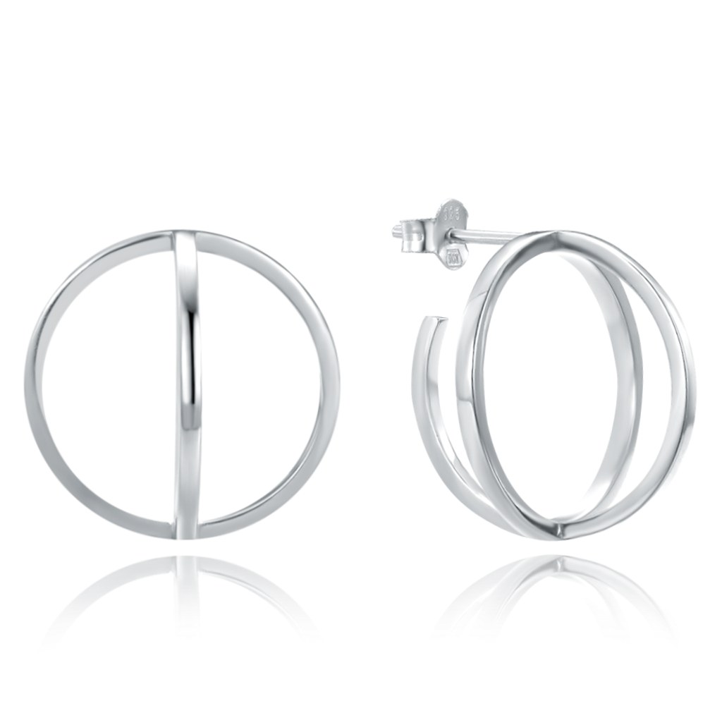 MINET Stříbrné dvojité kruhové geometrické náušnice