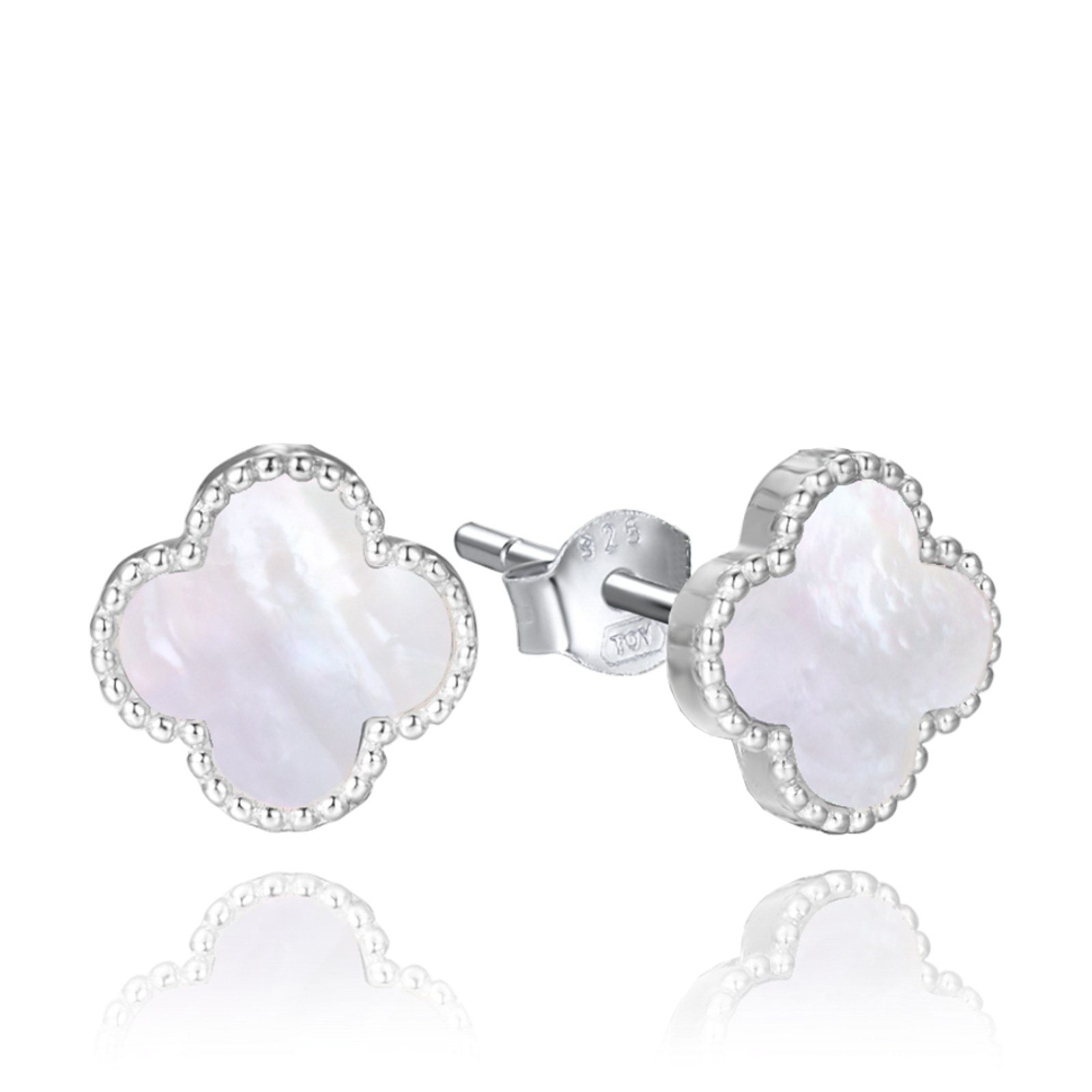 MINET Stříbrné náušnice čtyřlístky s bílou perletí