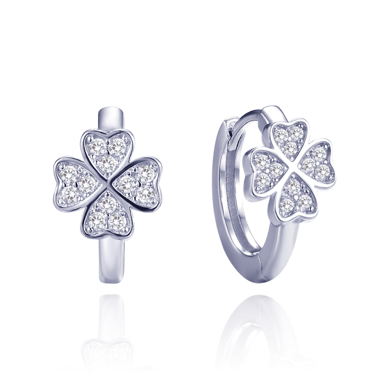 MINET Stříbrné náušnice čtyřlístky s bílými zirkony