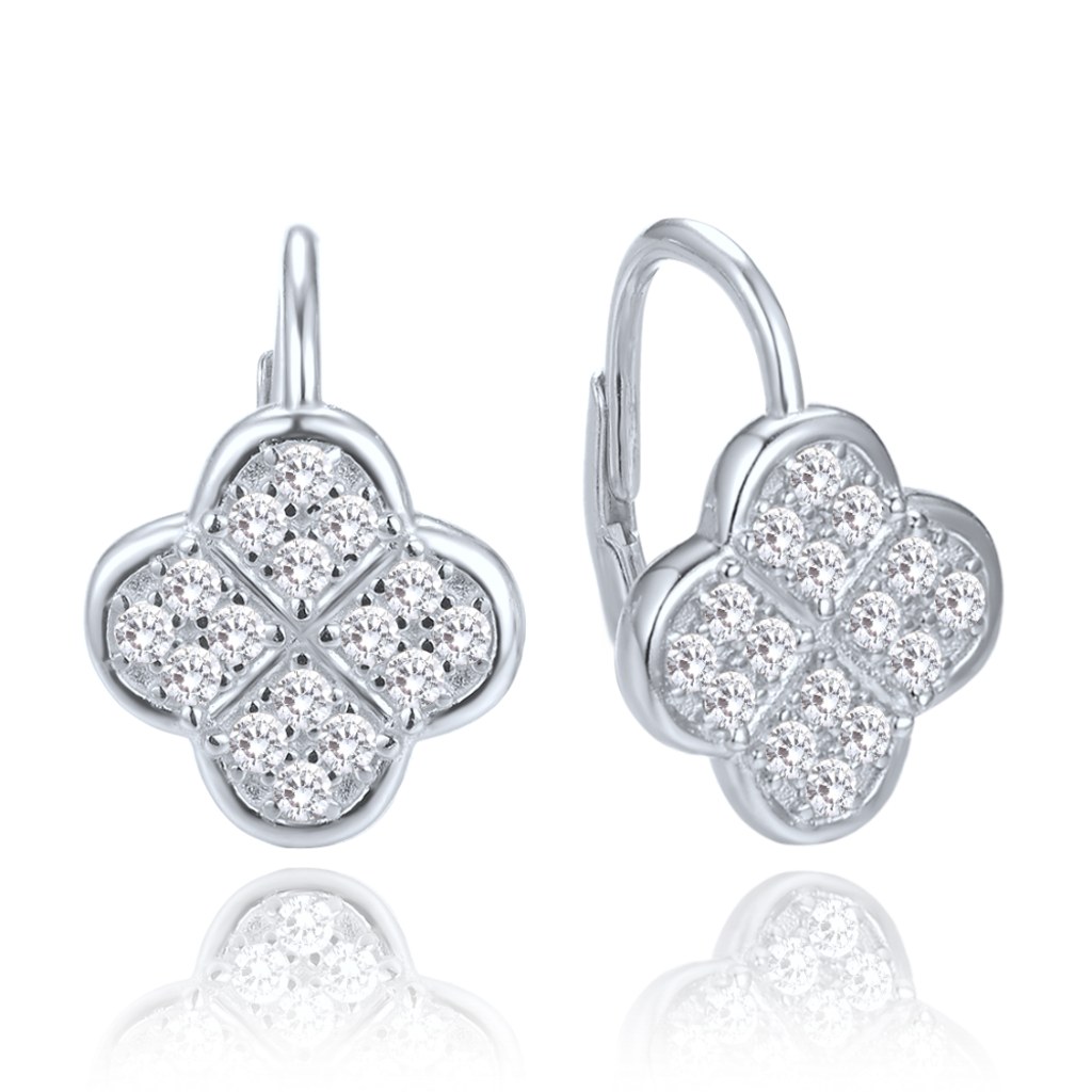 MINET Stříbrné náušnice čtyřlístky s bílými zirkony