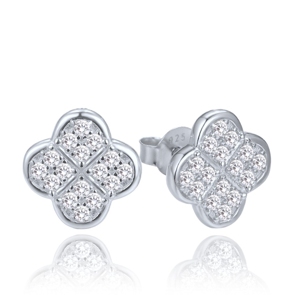 MINET Stříbrné náušnice čtyřlístky s bílými zirkony
