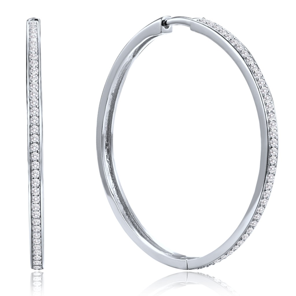 MINET Stříbrné náušnice hranaté kruhy 4 cm s bílými zirkony
