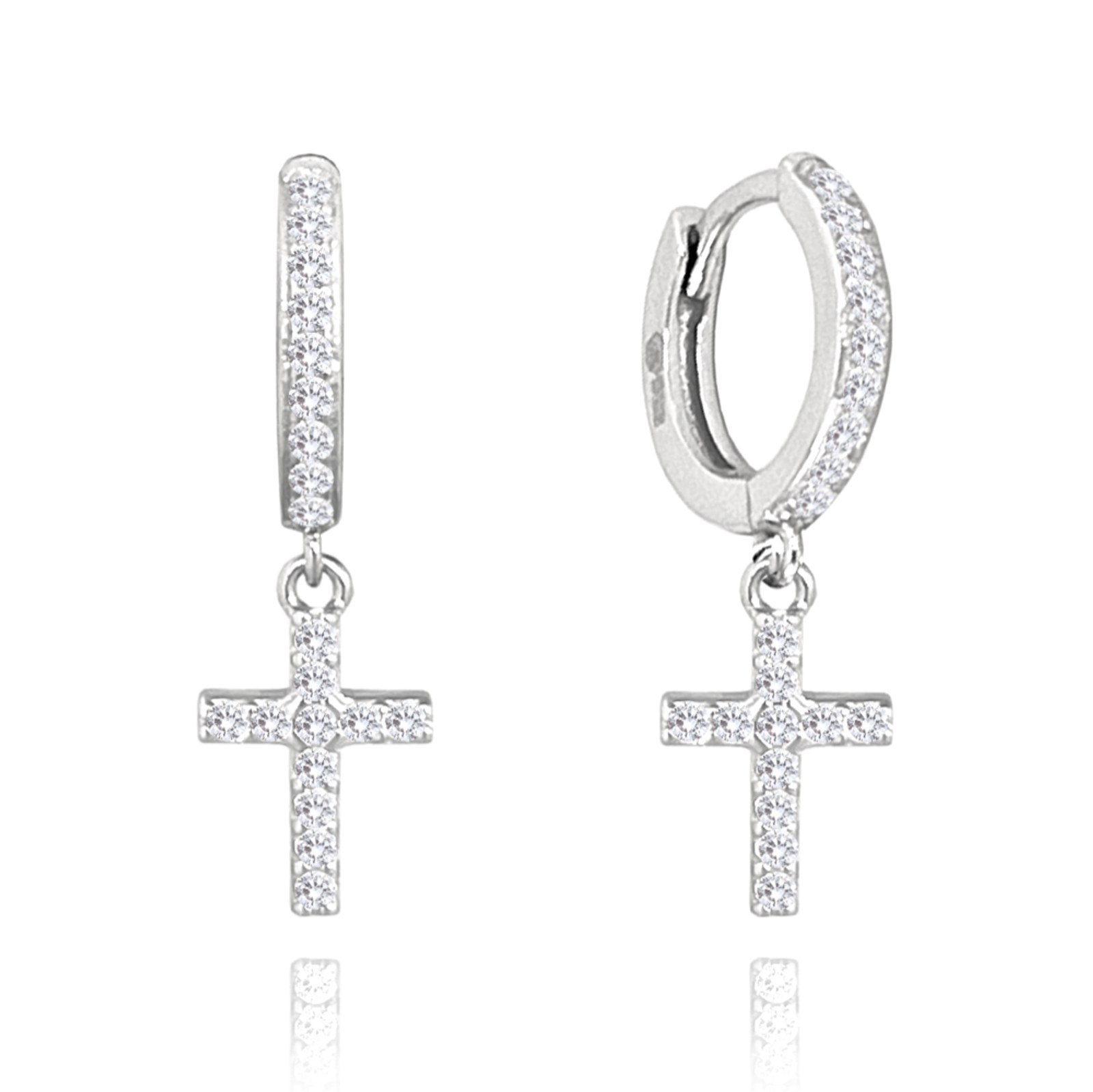 MINET Stříbrné náušnice KŘÍŽKY se zirkony