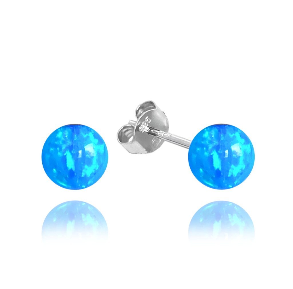 MINET Stříbrné náušnice KULIČKY se světle modrými opálky 6mm