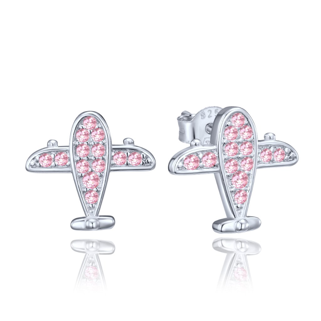MINET Stříbrné náušnice letadla s růžovými zirkony