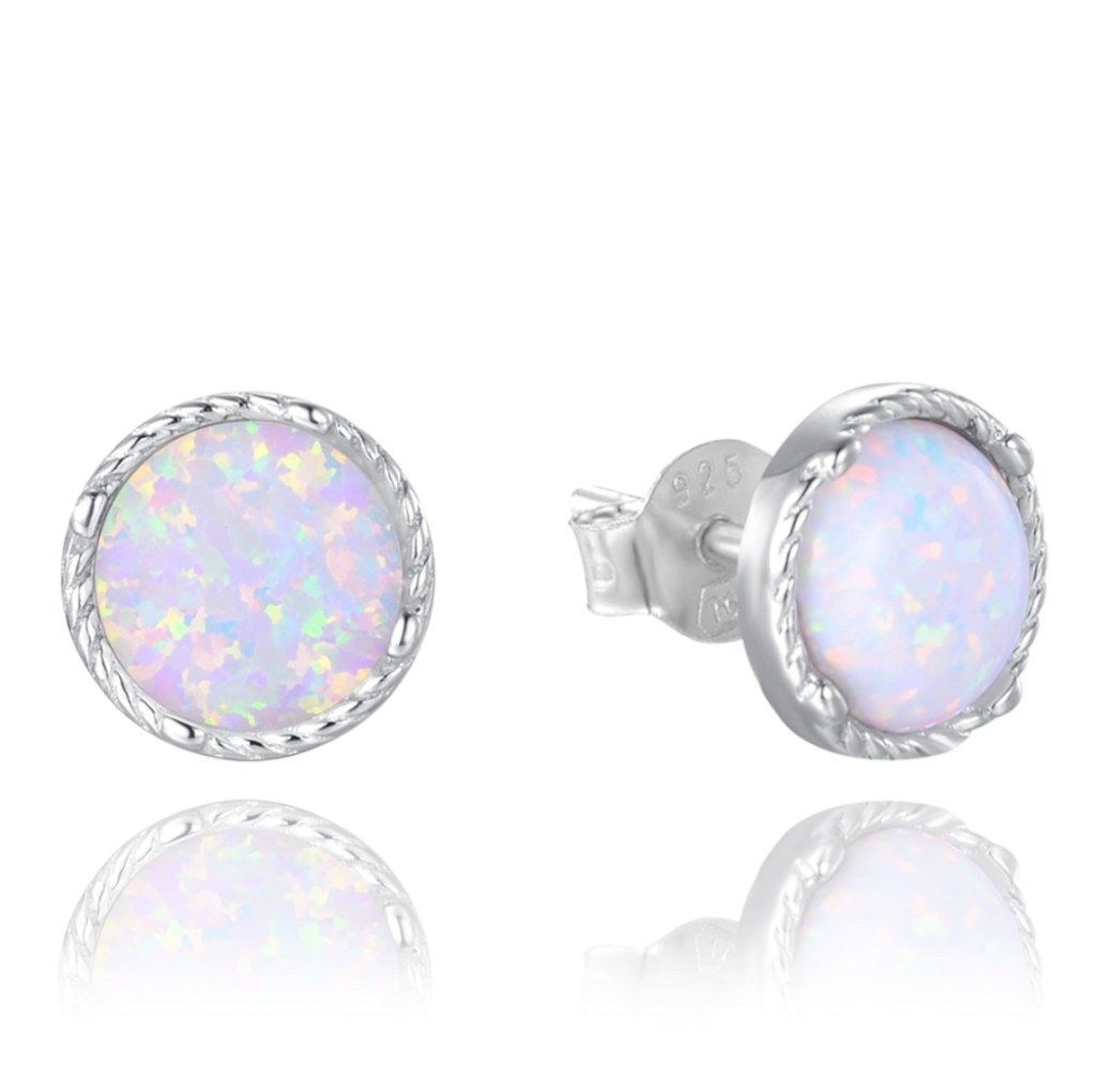 MINET Stříbrné náušnice s bílými opálky 8mm