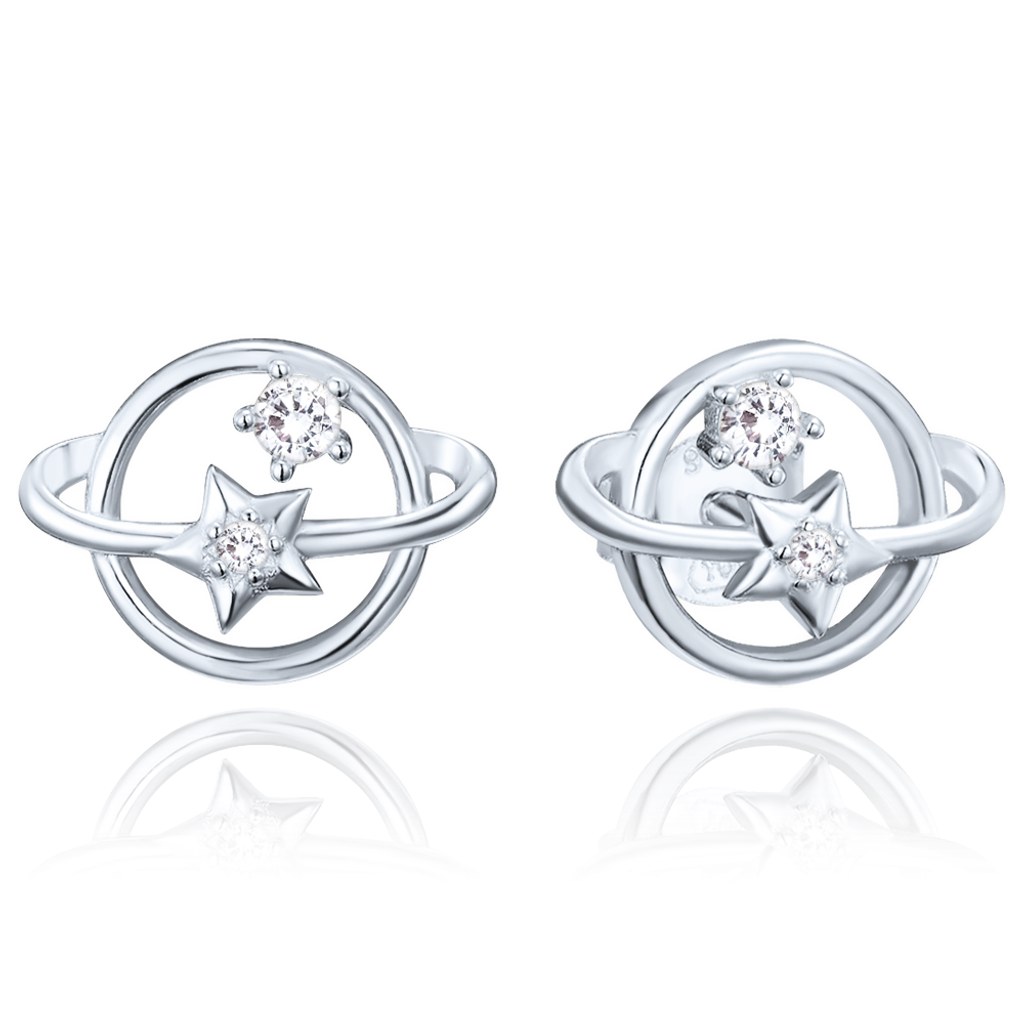 MINET Stříbrné náušnice Saturn s bílým zirkonem