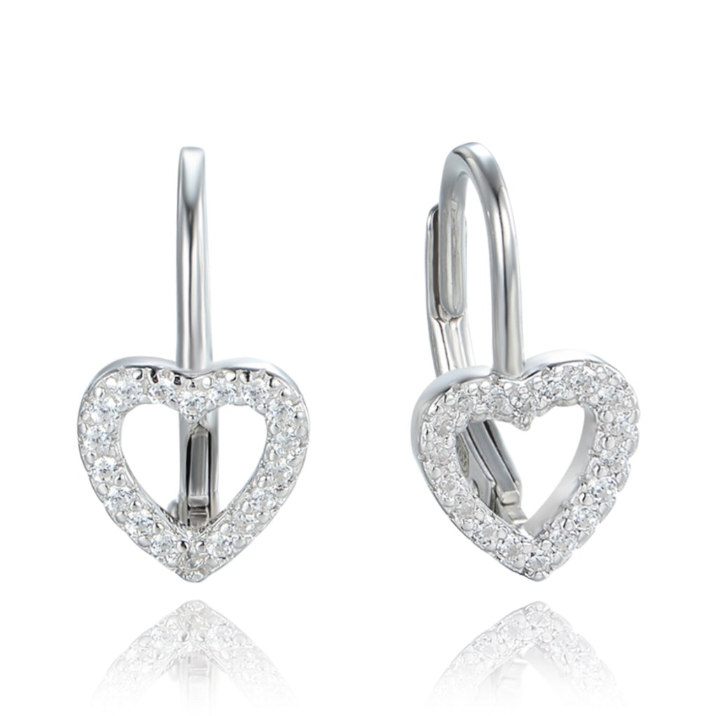 MINET Stříbrné náušnice srdce s bílými zirkony