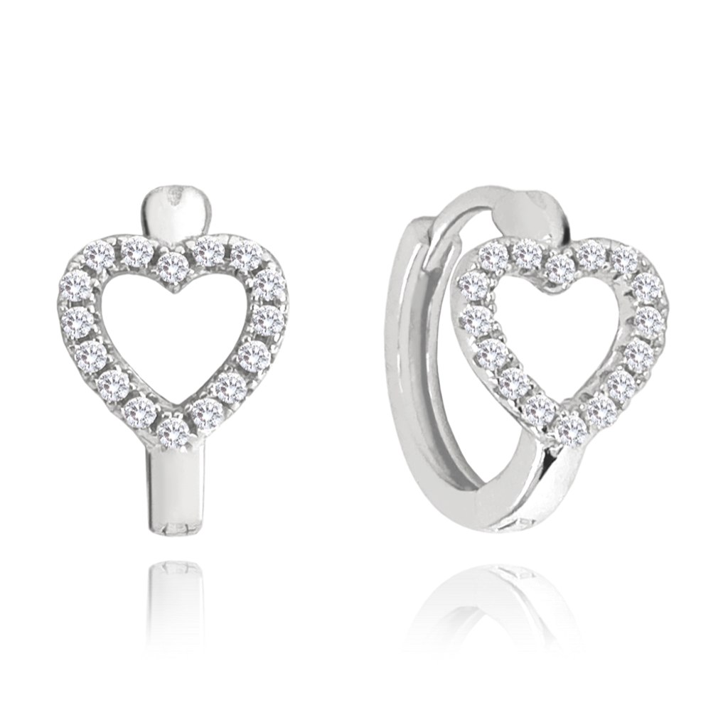 MINET Stříbrné náušnice SRDÍČKA s bílými zirkony