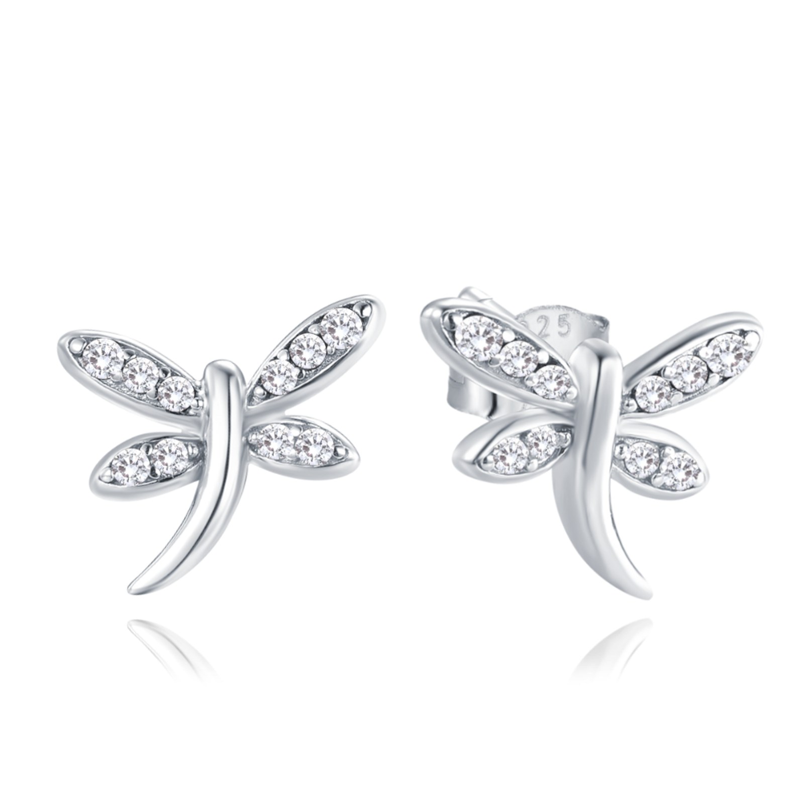 MINET Stříbrné náušnice vážky s bílými zirkony