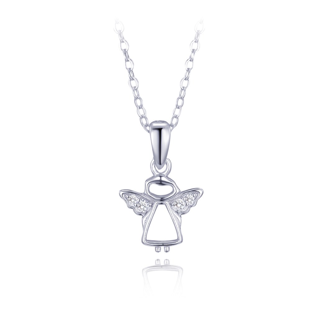 MINET Stříbrný náhrdelník anděl s bílými zirkony